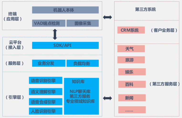 大会现场,机器人豹小秘、Cooky、小丹是此次展会中不可多得的亮点之一。作为一家坚持认知“大脑”研发的科技公司,小 i 机器人有虚拟形象机器人、同时也为硬件配“云端大脑”,赋予机器人“思考”的能力。依托于小 i 硬件智能云,小 i 将自主研发的智能机器人云操作系统 iBot OS 与与硬件机器人相结合,采用基于互联网的 C/S 架构,将云平台部署在互联网上,机器人终端通过接入层、服务层来访问引擎层,使机器人获得 语音、语义和人脸识别能力 。目前配备小 i“大脑”的机器人已活跃在大型活动、酒店医院、政务大厅等等,化身为主持人、大堂经理、舞娘或者是一位陪伴人们的好朋友。
