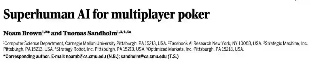 [3] Brown, Noam, and Tuomas Sandholm. "Superhuman AI for multiplayer poker." Science (2019): eaay2400.