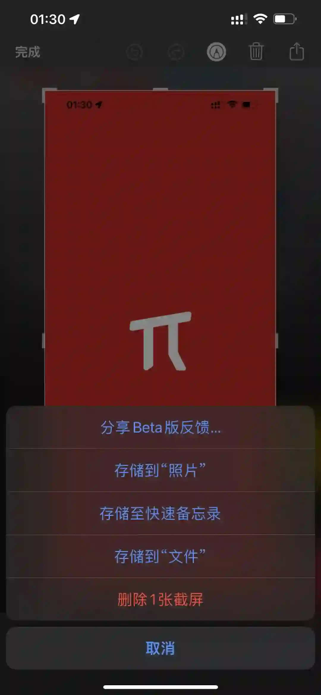 当我们在 iPhone 上截图后点击左上角的「完成」按钮,会在底部呼出一个包含「储存到『照片』」「储存到『文件』」和「删除 1 张截图」选项的菜单,而在第二个开发者预览版中,Apple 新增了一个「储存到『快速笔记』」的选项,可以将当前截图直接添加到备忘录 App 中的新建笔记中。