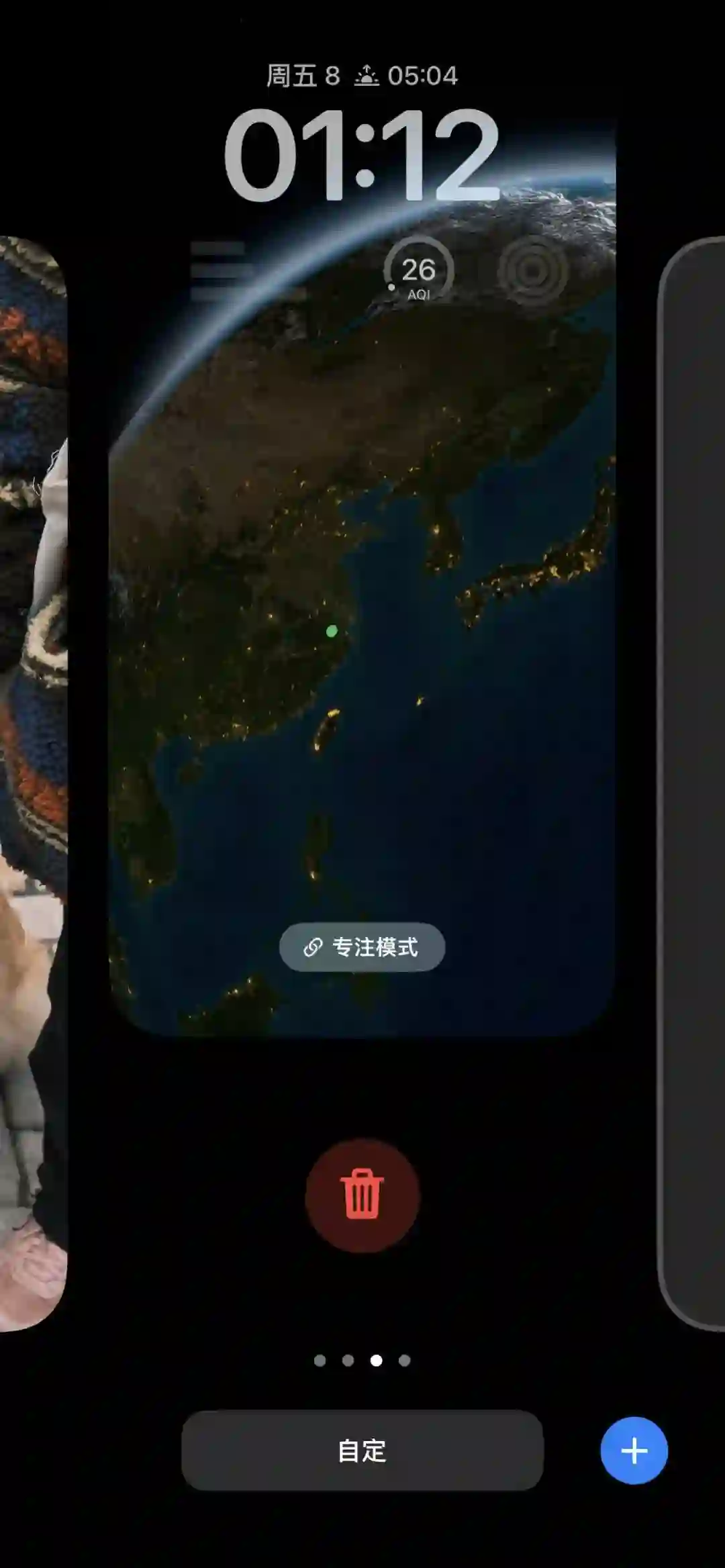 对了,iOS 16 可以保存多个锁屏配置,方便用户在各个配置之间切换,但如果你不喜欢其中的一个配置,从 Beta 2 开始可以直接通过上滑屏幕来呼出删除按钮。