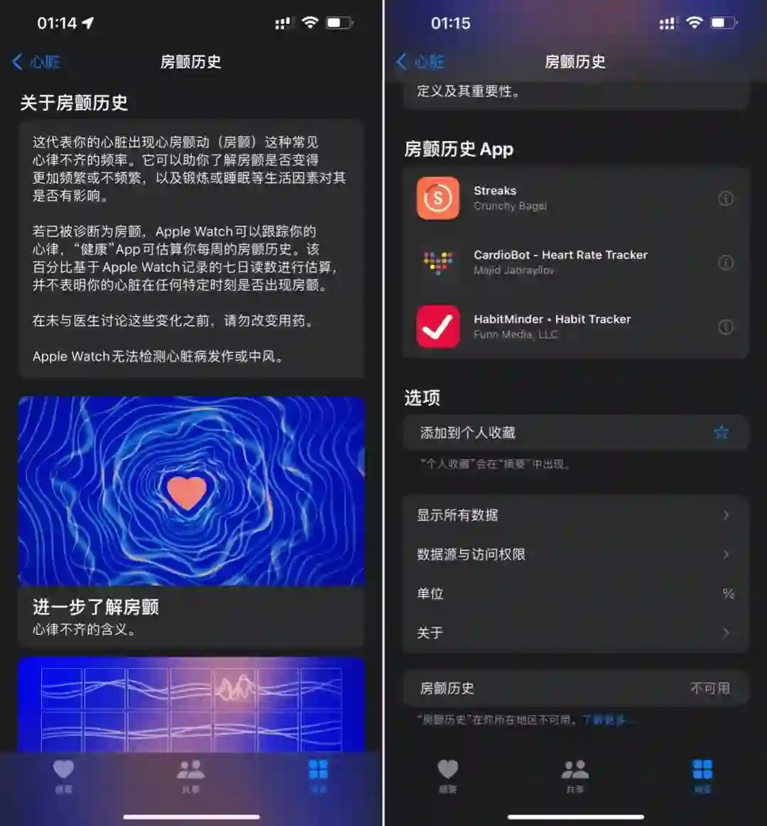 不过,经过我们测试,房颤功能在国内目前还是显示「不可用」的状态。
