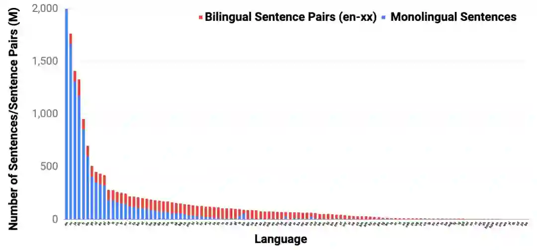 在先前研究中,我们建议使用翻译排名任务学习多语言句子嵌入向量空间。这种方法给定源语言中的一个句子,让模型在目标语言的句子集合上对真实翻译进行排名。翻译排名任务使用具有共享转换器编码器的双编码器架构进行训练。生成的双语模型在多项并行文本检索任务(包括 United Nations 和 BUCC)上取得了最前沿 (SOTA) 的性能。然而,由于模型容量、词汇覆盖率、训练数据质量等方面的限制,当双语言模型扩展到支持多种语言(在测试用例中共有 16 种语言)时,模型性能有所降低。