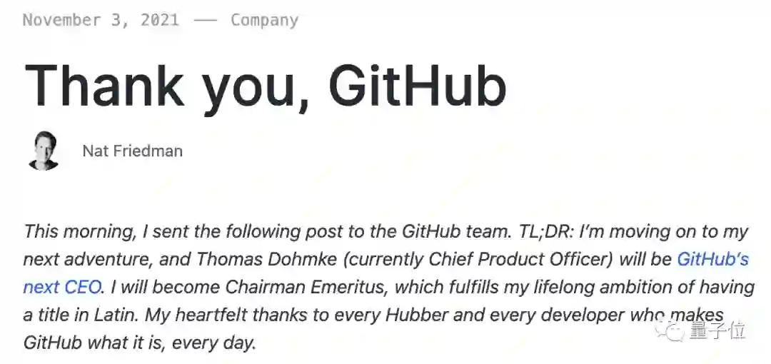 一句“Thank you, GitHub”,纳特·弗里德曼(Nat Friedman)——原GitHub CEO,正式宣布卸任。
