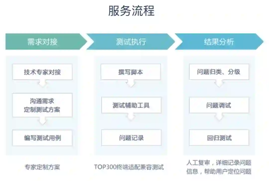 腾讯WeTest AI自动化能力已经在内外部多款产品上得到了验证,兼容效率全面提升。在深度兼容测试服务中,基于AI自动化能力为用户覆盖产品核心场景,对市面主流TOP300终端进行适配兼容测试。