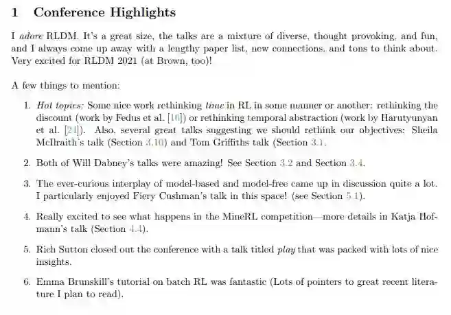后台回复“RLDM2019会议笔记” 就可以获取布朗大学《强化学习与决策》会议笔记的下载链接。