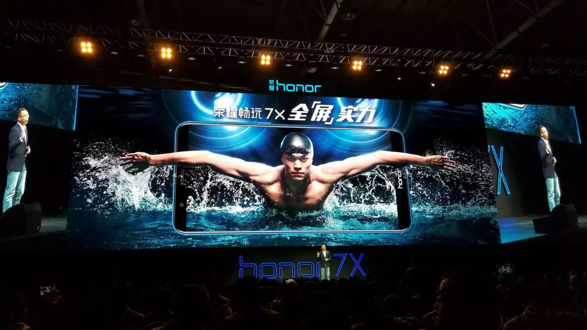 @搜狐科技【抢占全面屏千元机市场,荣耀推出畅玩7X定价1299元起】华为旗下荣耀昨天正式发布了荣耀第一款、华为第二款全面屏手机“荣耀7X”,并邀请奥运冠军孙杨代言。荣耀7X配备了一块5.93寸的18:9全面屏,分辨率1080p,定价1299元起。在全面屏手机成为行业热点的同时,荣耀将全面屏产品拉至千元机价位,进攻意味非常明显。