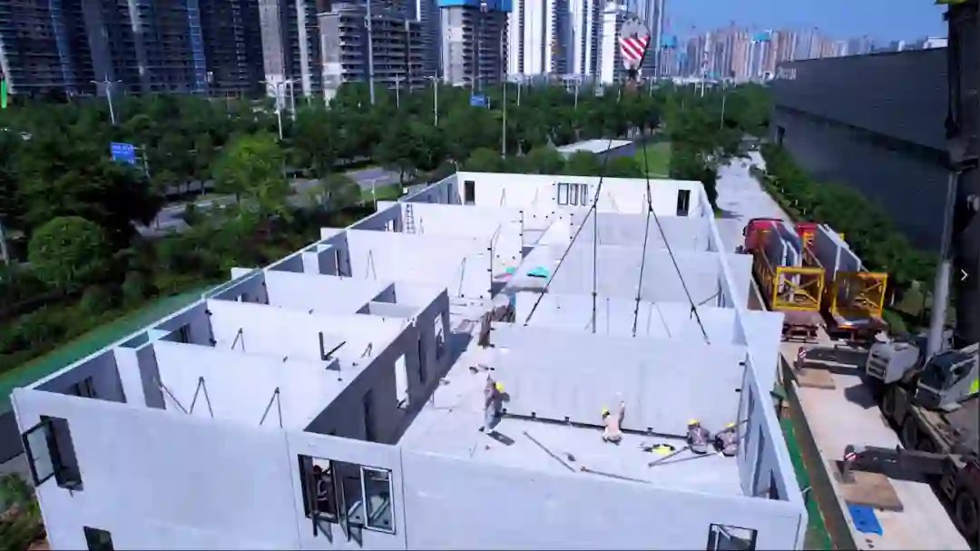 远大住工宿舍型公寓产品安装现场(来源:远大住工)