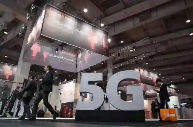 图为4月1日,在德国汉诺威,参观者经过“5G Arena”展区。(新华社记者单宇琦摄)