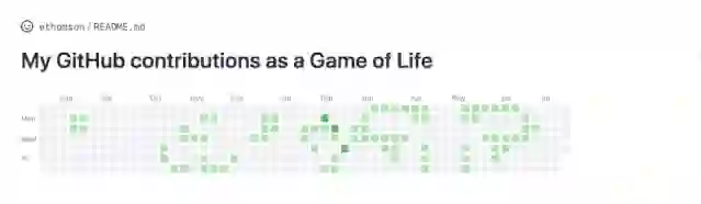 在后台它用了 contributions[14] 库(可用 GitHub 贡献图构造数据结构的库)和 dat-life[15] 库(可用于实现 Conway's Game of Life 的库)。更多详情参见 这里[16].