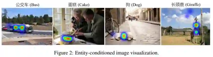 基于实体的图像注意力可视化。在本实验中,研究者尝试在 COCO-CN 上可视化图像的注意力。具体来说,他们首先从中文文本中提取一个实体,并计算图像与实体对的注意力得分。下图 2 展示了四个不同实体在图像上的可视化解释。这表明 R2D2 很好地学会了将文本与图像中的正确内容对齐。