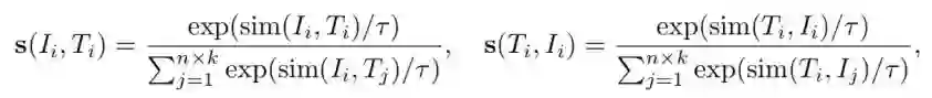 首先是全局对比预排序。传统的对比学习旨在对齐多模态数据的表示(如成对图文),它最大化了正对的相似度分数并最小化了负对的分数。研究者则使用全局对比学习来完成预排序任务,他们在 k 个 GPU 上执行完整的反向传播。对于每个图像 I_i 和对应的文本 T_i,图文和文图的 softmax 归一化相似度分数可以如下定义: