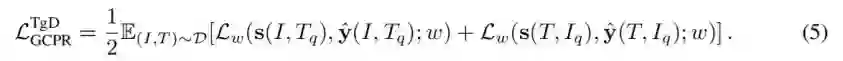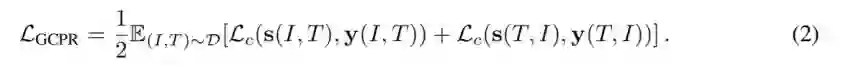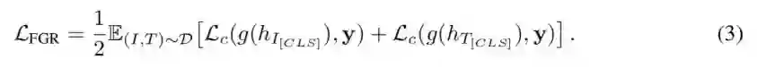 研究者将 h_I_[CLS] 和 h_T_[CLS]作为两个交叉编码器的输出表示。给定一个图像表示 h_I_[CLS]和一个文本表示 h_T_[CLS],研究者将它们输入到一个全连接层 g(·)以得到各自的预测概率。令 y 表示为二元分类的 ground-truth 标签,研究者对细粒度排序损失进行如下的计算。