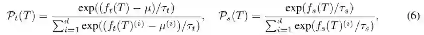 为了进一步提高模型性能,研究者对输入采用掩码策略。在具体实现中,将完整的输入提供给教师模型,将经过遮盖的输入提供给学生。依靠动量机制,目标是让学生的特征更接近教师的特征。形式上,教师和学生模型的预测分布分别定义如下: