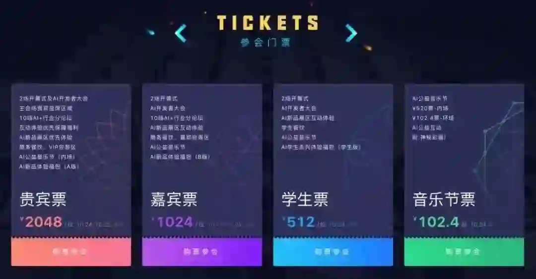 2018届全球1024开发者节官网已正式上线,票务系统已正式启动,开启贵宾票、嘉宾票、学生票、音乐节票,为你提供丰富选择。点击阅读原文即刻进入购票!