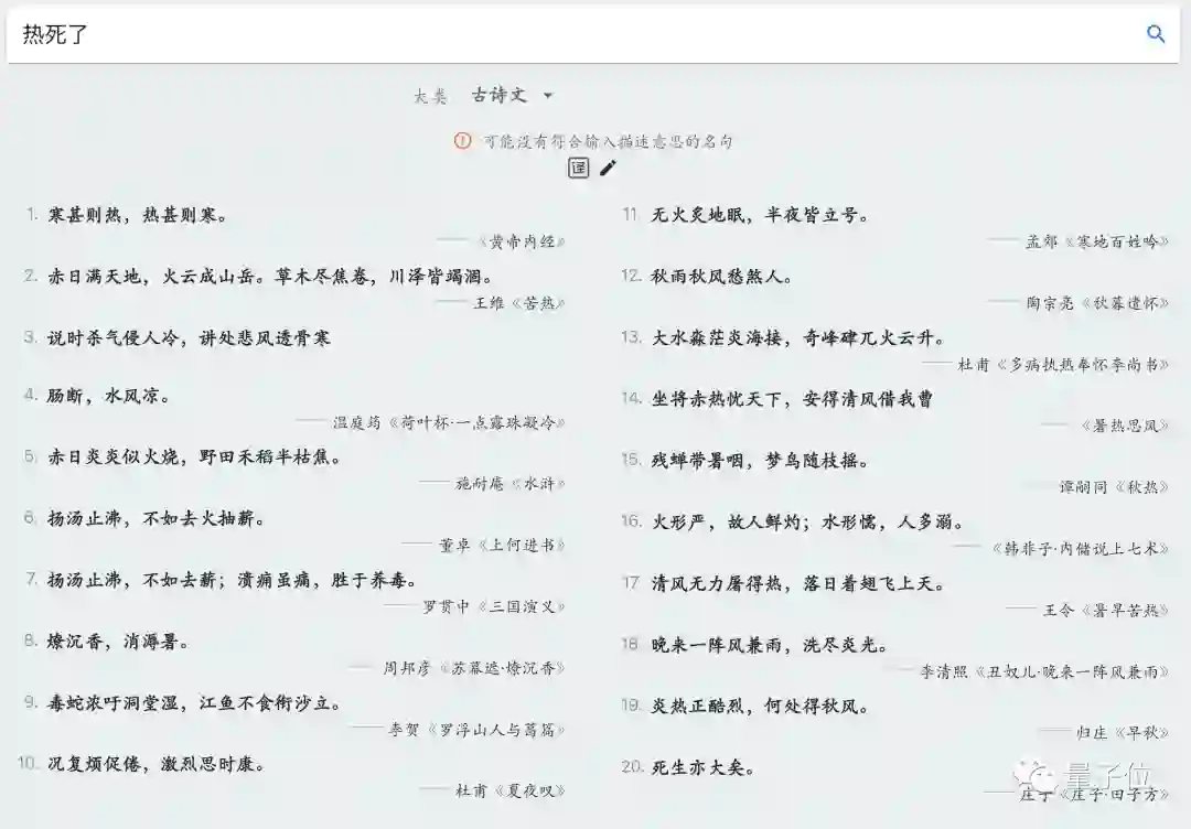 以上说的这个好登西,是由清华推出的“据意查句”神器——WantQuotes。