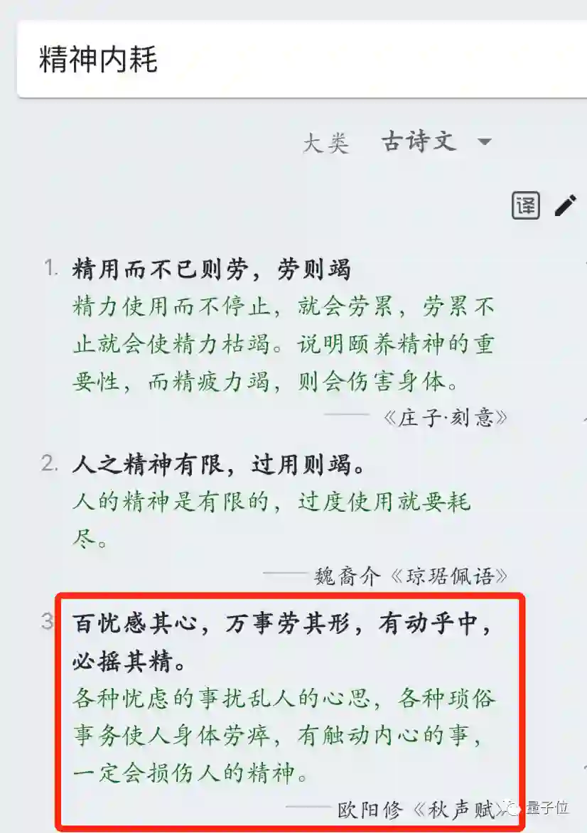 来自欧阳修《秋声赋》中的这句“百忧感其心,万事劳其形,有动乎中,必遥其情”,说的意思就是焦虑使人精神疲惫。