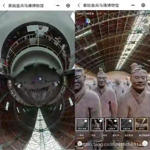 另外对于无法前去参观的游客,还可以通过小程序直接浏览兵马俑360°超清全景图,感受秦陵文化遗产的磅礴之势。据悉,“寻迹始皇陵”小程序采用了矩阵全景技术,收录了秦陵博物院景图资料,其中在一号坑以利用全景技术将2000张4575万像素的图片拼接起来形成一幅高达500亿像素的室内全景图,将坑内的所有遗迹非常精细的展现出来。