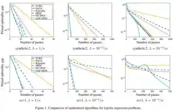 这篇论文由芝加哥大学和微软研究院共同完成,提出两类新的原对偶一阶算法来求解经验风险最小化的凸优化问题。通过自适应地利用样本数据中暗含的强凸性质,文中证明了这两类新算法的线性收敛速率。另外,通过利用Dual-free的技巧,文中将算法中Euclidean距离下的邻近算子替换为Bregman距离下的邻近算子,从而得到两类Dual-free原对偶算法变体。最后实验证明该算法的有效性。