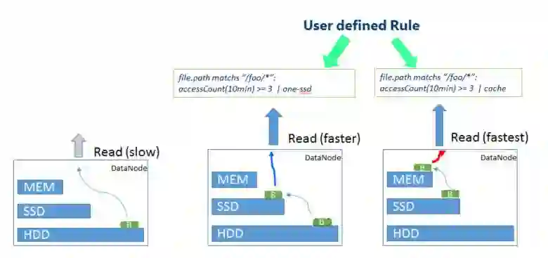 前面介绍的无论HDFS异构存储还是纠删码技术,前提都是需要用户对特定的数据指定存储的行为,就是说用户需要知道哪些数据是热点数据,哪些是冷数据。那有没有一种方法可以自动对存储进行优化呢?