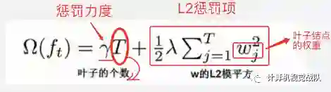 如果叶子结点的个数太多,那么过拟合的风险会越大,所以这里要限制叶子结点的个数,所以在原来目标函数里要加上一个惩罚项「omega(ft)」。