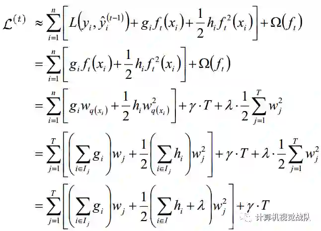 将关于树模型的迭代转换为关于树的叶子节点的迭代,得到如下过程: