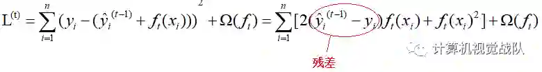 预测值在每一次迭代中加入一个新的函数f目的是使目标函数尽量最大地降低。 因为我们的目标是最小化L(φ)时得到模型f(x),但是L(φ)中并没有参数f(x),所以,我们将上图中的最后一式代入L(φ)中可得到如下式子: