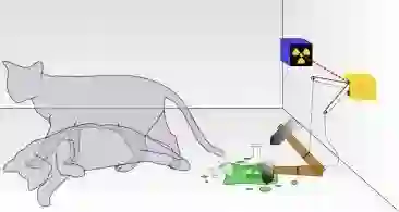 谈到物理学与人工智能,必须提下波动力学之父、曾提出过“薛定谔猫”佯谬 (见图5)的奥地利物理学家埃尔温·薛定谔。他于1944年出版的书《生命是什么---活细胞的物理学观》开启了分子生物学的大门,也有说其对人工智能的早期发展起了重要作用。他认为物理学和化学原则有助于解释生命现象,而基因的持久和遗传模式的稳定可以用量子理论来说明。该书也促使英国物理学家克里克从粒子物理的研究转行到生物学,并与美国生物学家沃森一起在1953年提出了DNA双螺旋分子结构模型,解开了遗传信息的复制和编码机理。