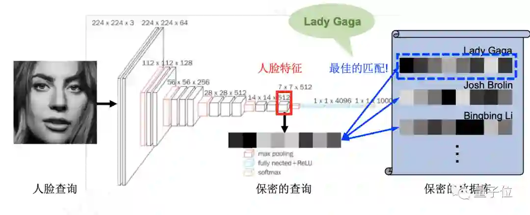 也就是说,这一过程中查询方和数据库运营方互相不暴露自己的信息,也就避免了人脸特征数据库信息泄露的风险,从而使人脸数据数据拥有方能够放心地将数据分享出来共同使用。