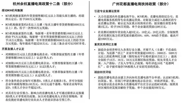 据不完全统计,今年来,共有广州、上海、杭州等11地相继推出扶持政策,它们在发展直播产业上各有禀赋。