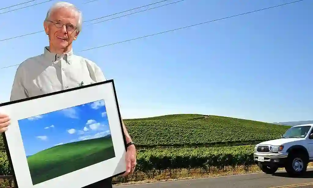 比如 Windows XP 蓝天草地壁纸,虽然这张图的后期渲染味很重,但它其实是摄影师 Charles O'Rear 于 1996 年在加州索诺玛县拍摄的,后来才被微软看中,并买下了图片版权。