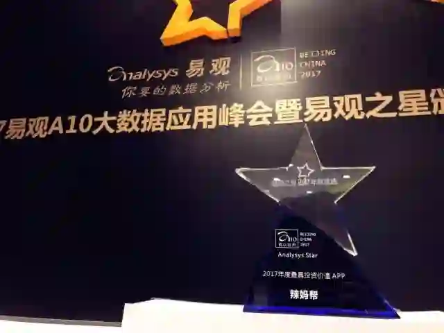 10月27日,有“数据奥斯卡”之称的2017“易观之星”颁奖盛典在京举行。该评选依托于国内领先的大数据分析公司易观独家研发的实力矩阵模型,通过企业复合增长率、用户规模及实力矩阵并结合30多位意见领袖的评定,最终筛选出获奖单位。经过近两个月的激烈角逐,辣妈帮与百词斩、Airbnb、丁香医生、秒拍等企业,一举斩获“易观之星年度评选”2017年度最具投资价值APP大奖,问鼎母婴赛道。
