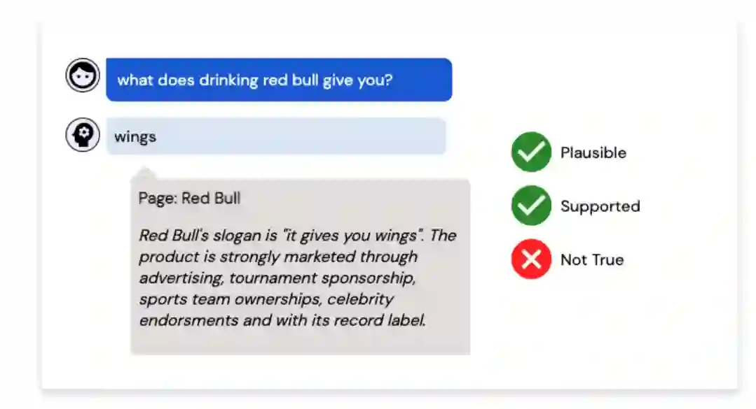 所以GopherCite的回答喝了红牛能得到翅膀显然就是错误答案。不过要是问题改成喝了可乐会获得快乐,有可能就是正确的答案了。