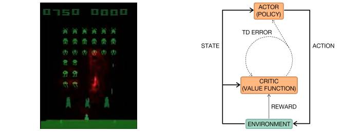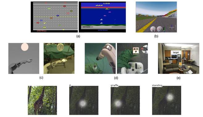 DQN与Lange等人提出的模型密切相关,但是DQN是第一个被证明可以直接从原始的视觉输入学习并且在多种环境中工作的RL算法。DQN最终的全连接层输出一组离散的动作,这不仅能够在网络的单次向前传递之后选择最佳动作,而且允许网络更容易地在较低卷积层中编码与动作无关的知识。DQN的目的只有一个,最大限度地提高视频游戏的分数,仅仅如此,智能体就学会了提取突出的视觉特征,联合对物体、运动以及彼此的交互进行编码。使用最初开发用于解释CNN在物体识别任务中的行为的技术,我们还可以查看智能体认为视图中重要的部分(参见下图)。