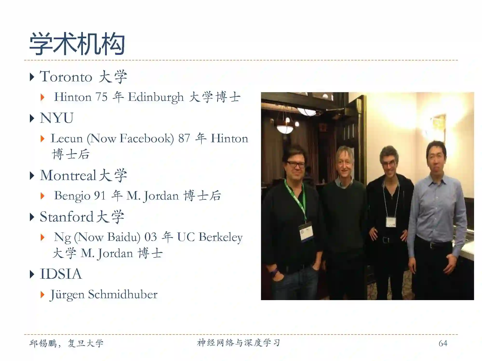 在深度学习领域,上面几个都是国际上比较知名的研究机构和学者。