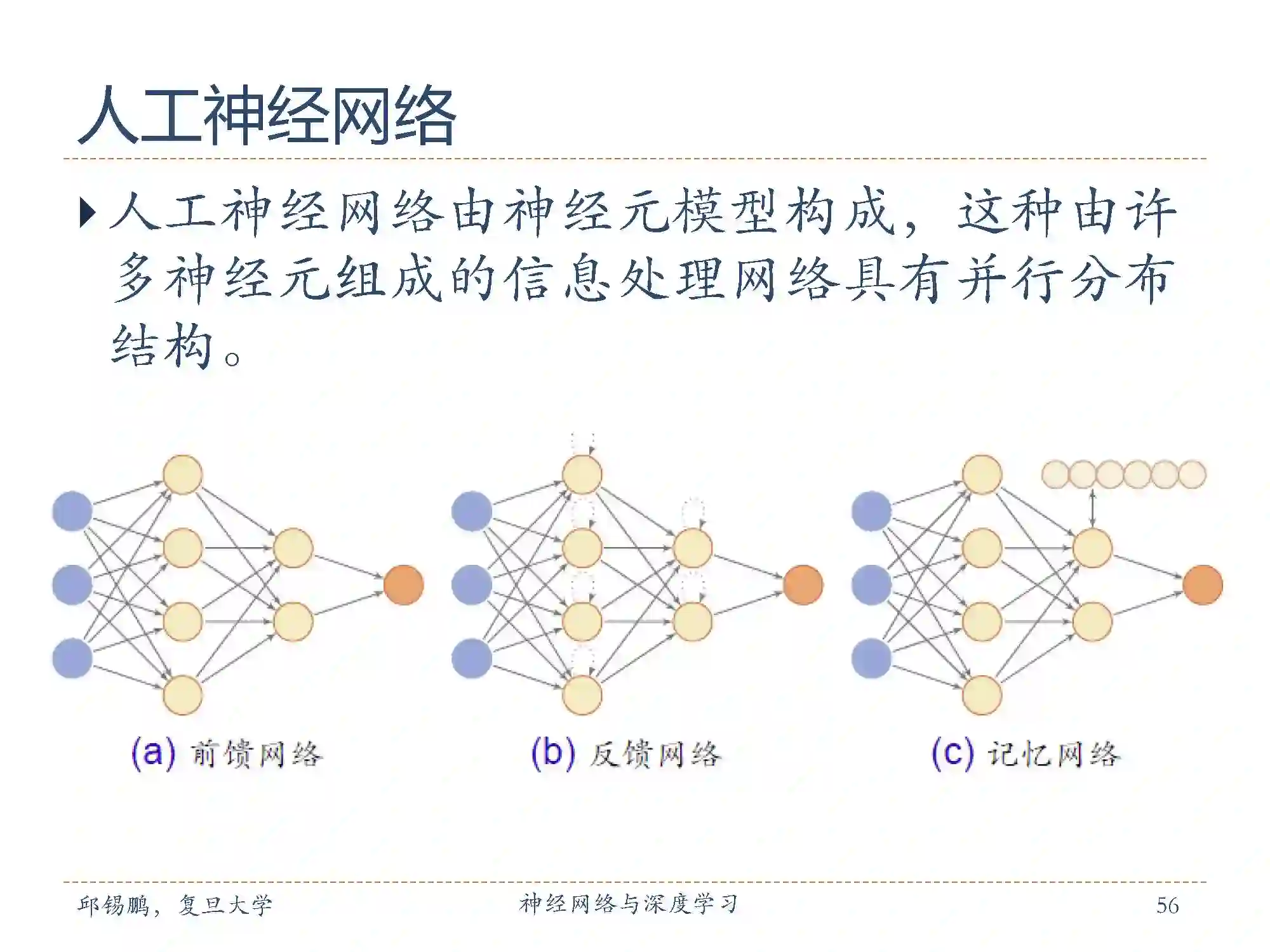常用的神经网络结构包括前馈网络,反馈网络,记忆网络。