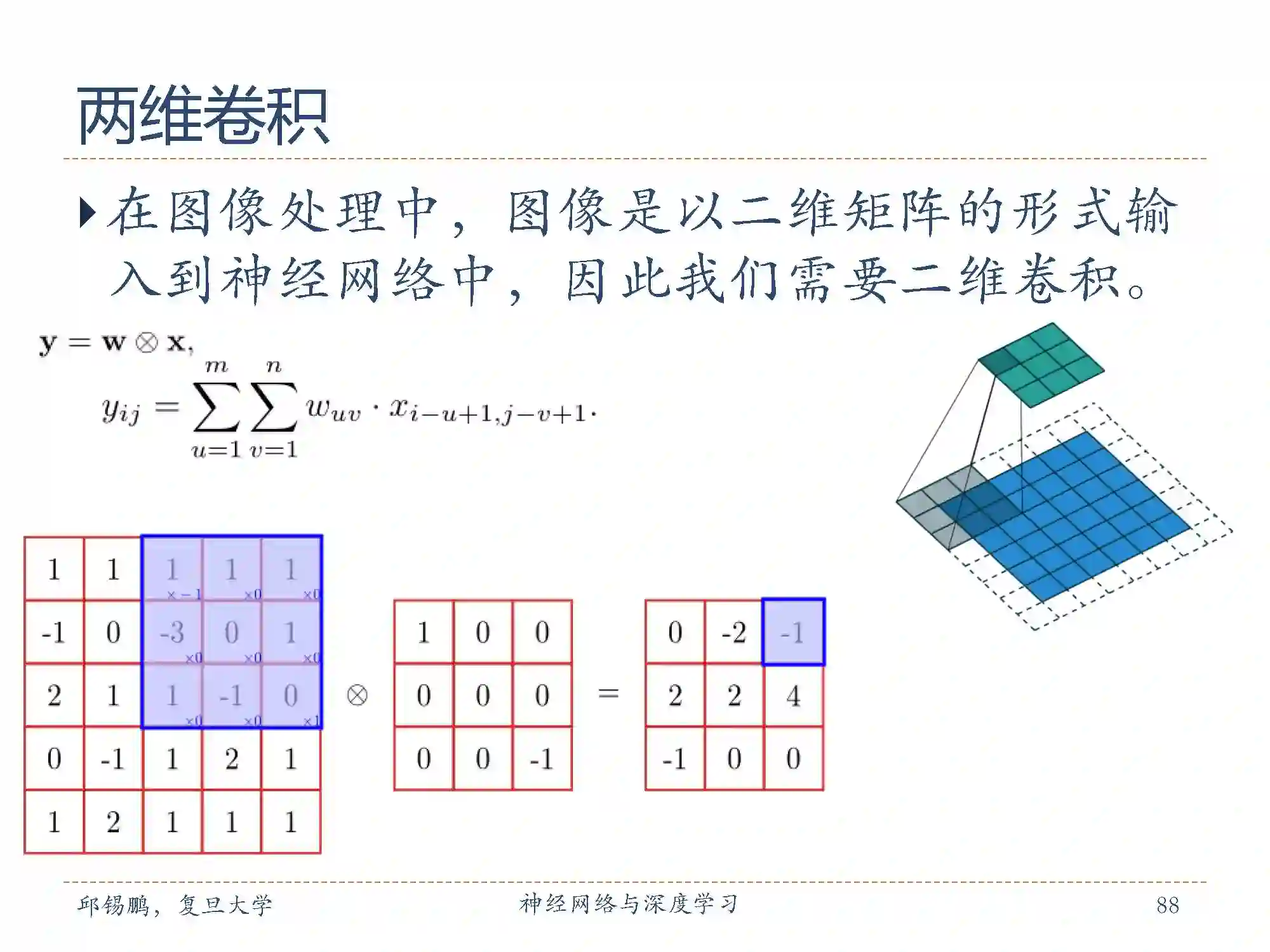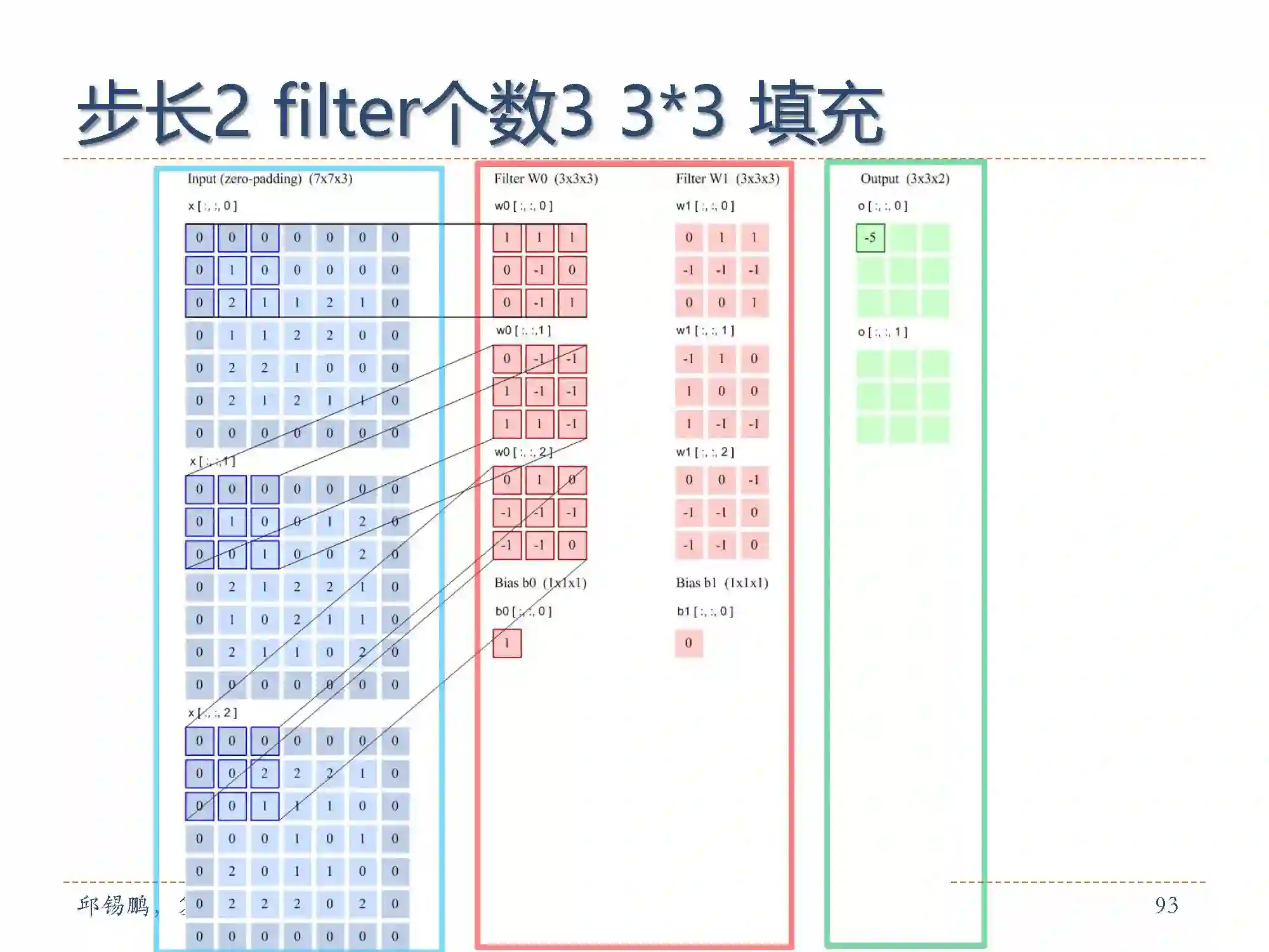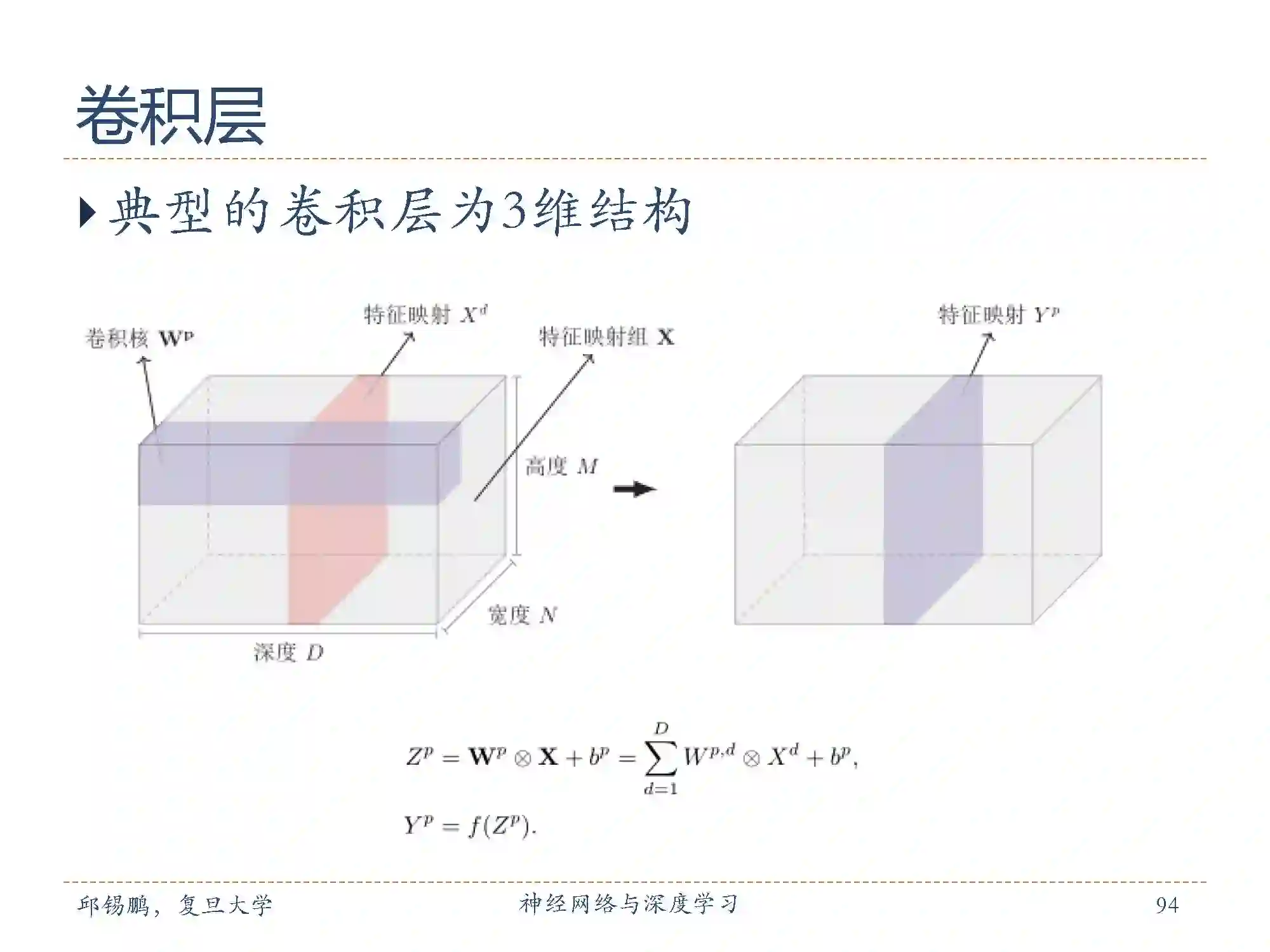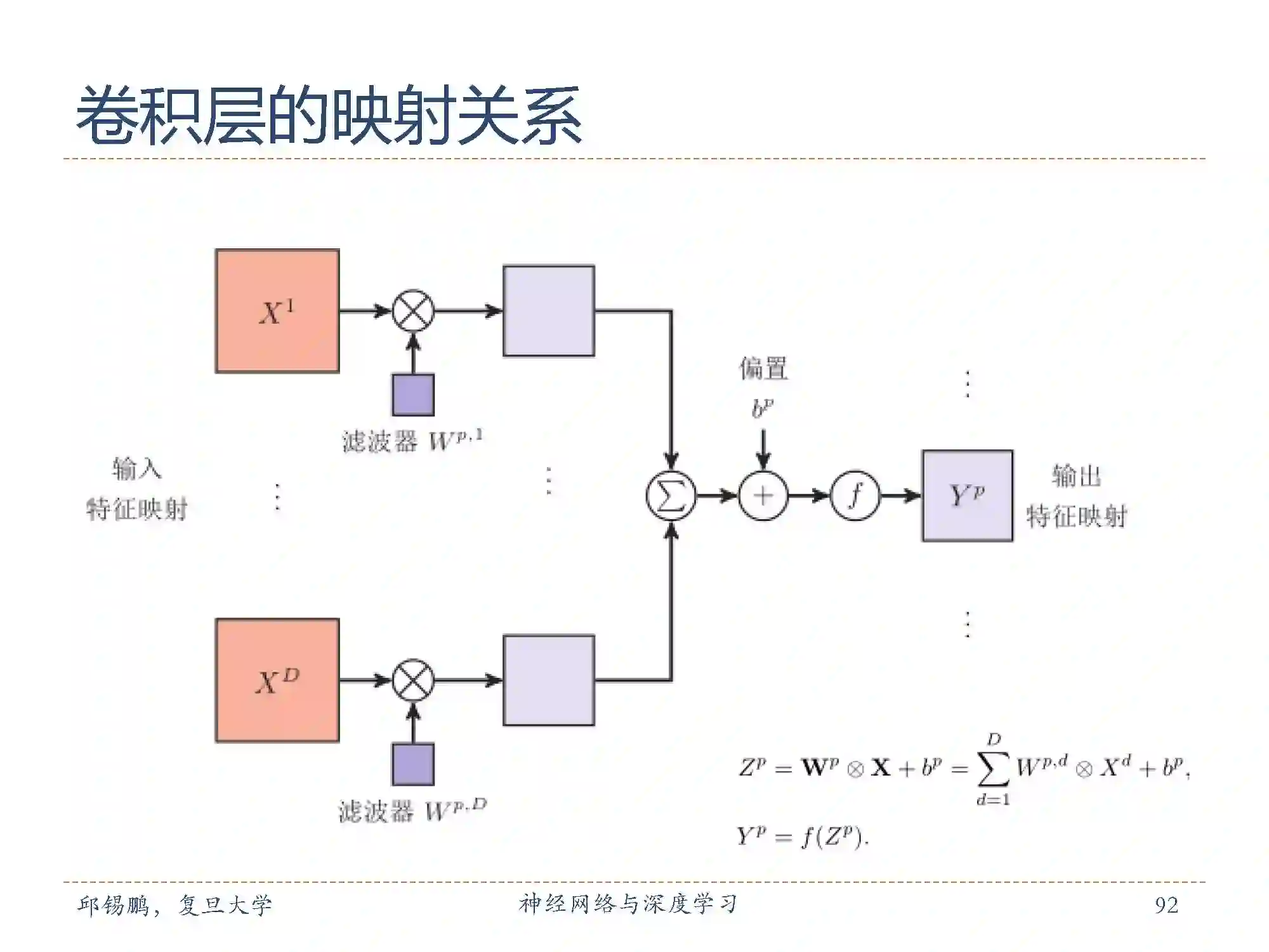卷积层中从输入特征映射组X到输出特征映射Yp 的计算示例。