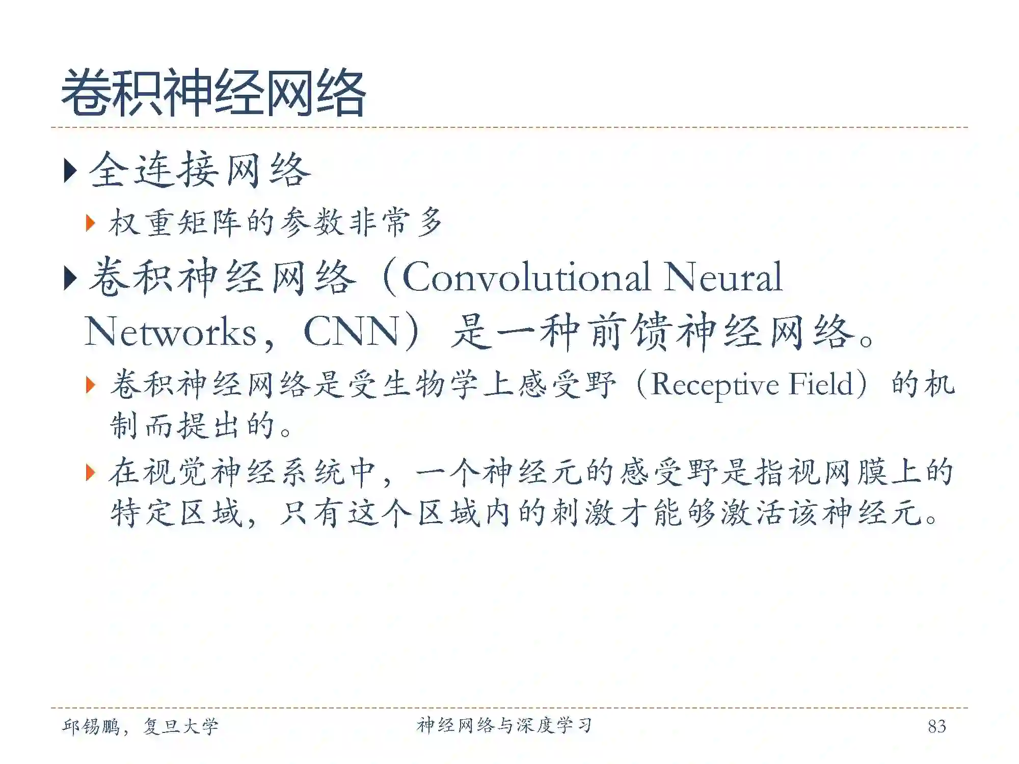 【导读】复旦大学副教授、博士生导师、开源自然语言处理工具FudanNLP的主要开发者邱锡鹏(http://nlp.fudan.edu.cn/xpqiu/)老师撰写的《神经网络与深度学习》书册,是国内为数不多的深度学习中文基础教程之一,每一章都是干货,非常精炼。邱老师在今年中国中文信息学会《前沿技术讲习班》做了题为《深度学习基础》的精彩报告,报告非常精彩,深入浅出地介绍了神经网络与深度学习的一系列相关知识,基本上围绕着邱老师的《神经网络与深度学习》一书进行讲解。专知希望把如此精华知识资料分发给更多AI从业者,为此,专知特别联系了邱老师,获得他的授权同意分享。邱老师特意做了最新更新版本,非常感谢邱老师!专知内容组围绕邱老师的讲义slides,进行了解读,请大家查看,并多交流指正! 此外,请查看本文末尾,可下载最新神经网络与深度学习的slide。