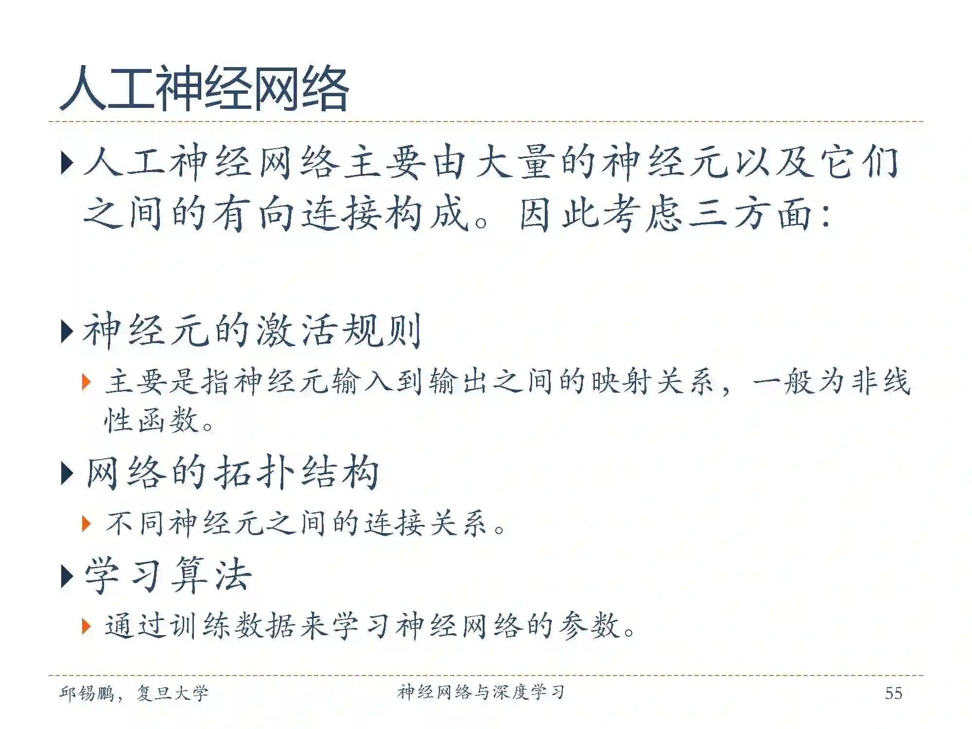 网络的拓扑结构:不同神经元之间有其链接关系。