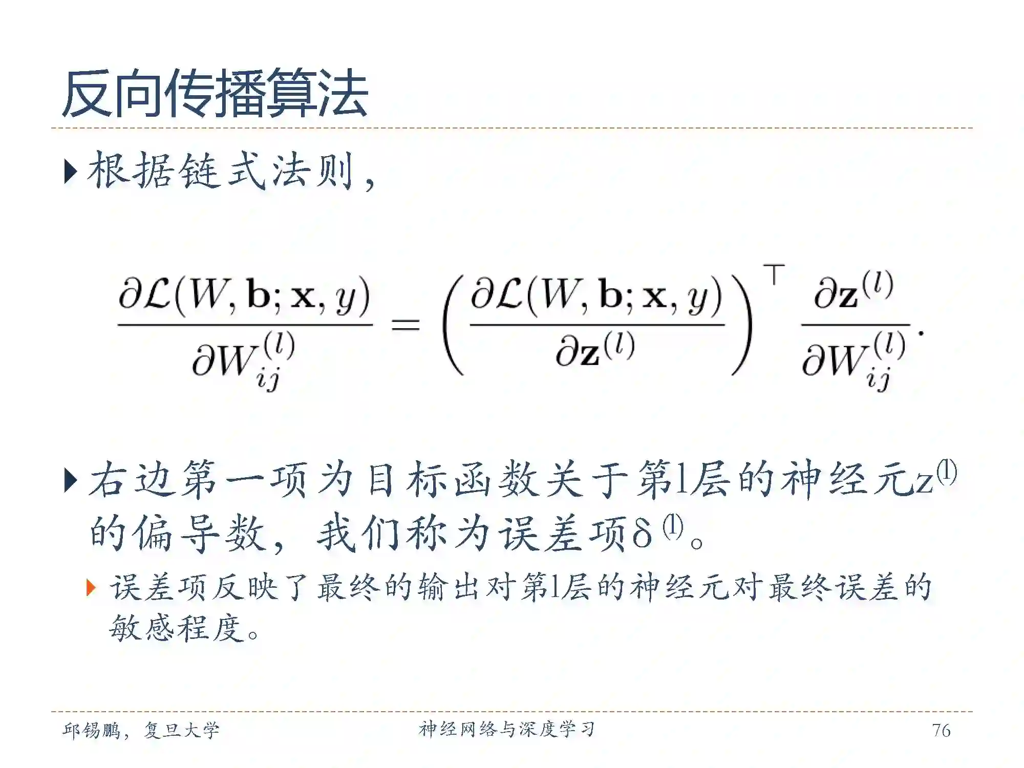 用误差项来表示第l层的神经元对最终误差的影响,也反映了最终的输出对第l层的神经元对最终误差的敏感程度。