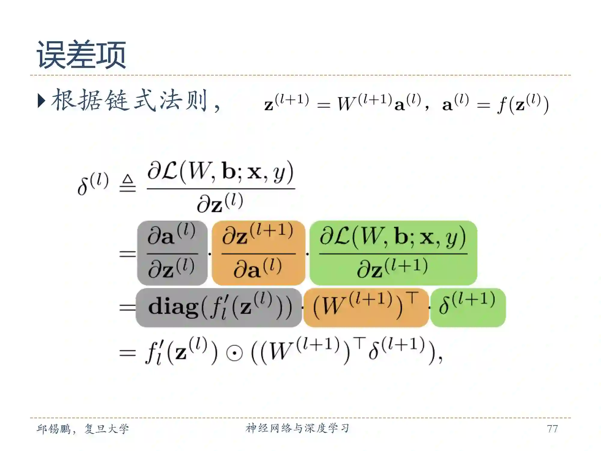 可以通过链式反则来逐层向前推进,