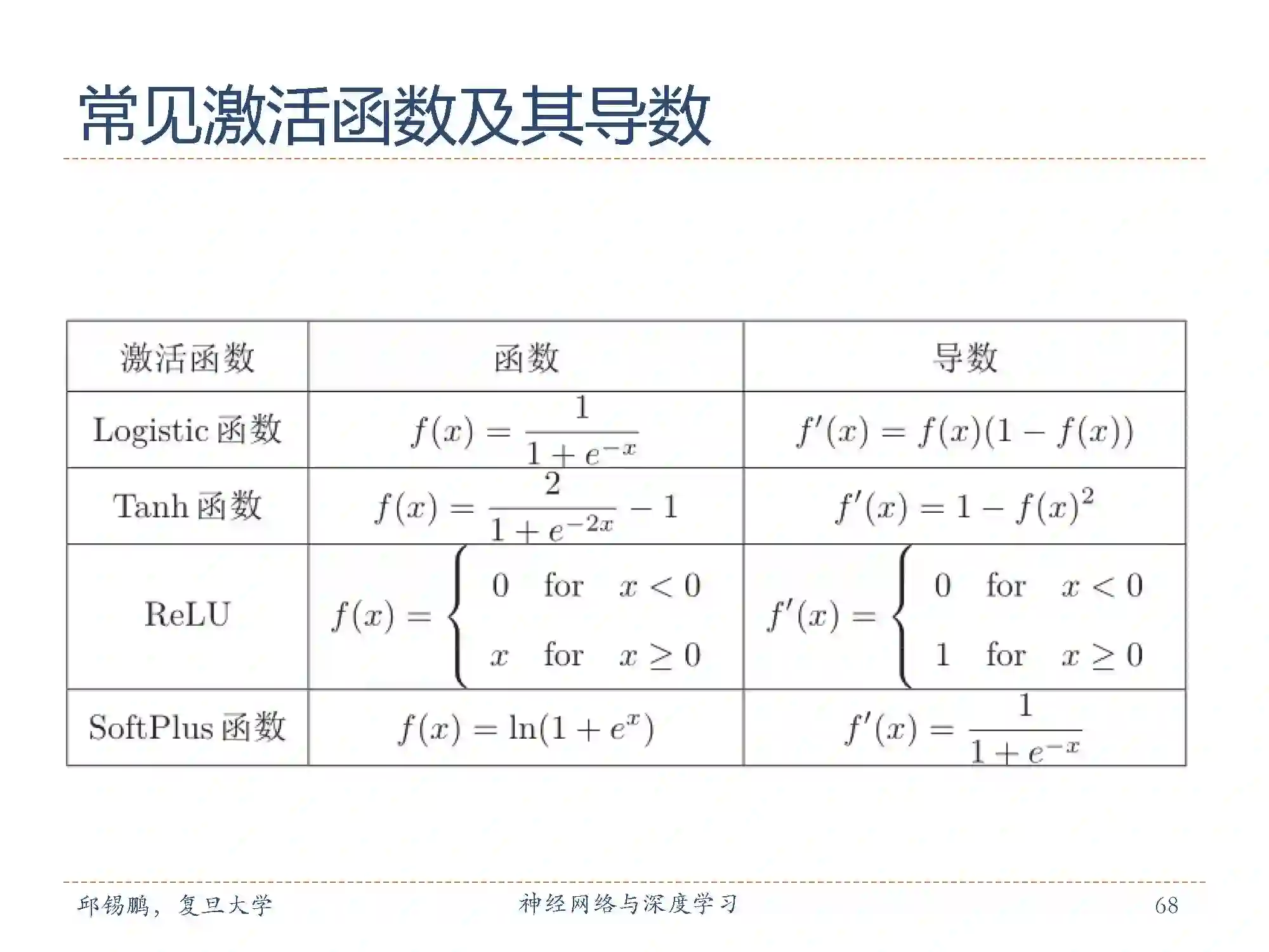 这是常见激活函数和其相关导数。