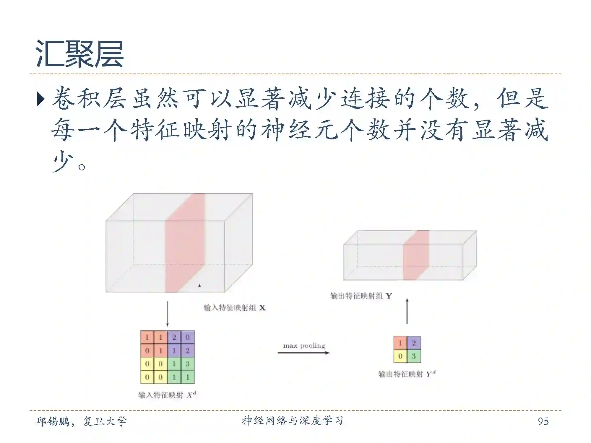 常用的汇聚函数有两种:1. 最大汇聚(maximum pooling):一般是取一个区域内所有神经元的最大值。平均汇聚(mean pooling):一般是取区域内所有神经元的平均值。