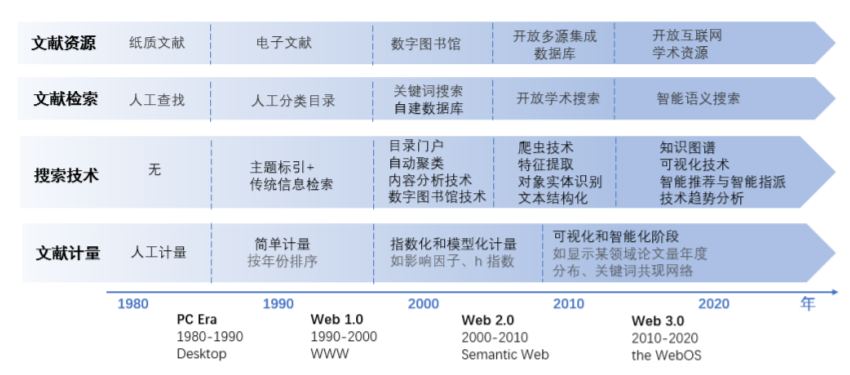 随着人工智能技术的不断引入,学术搜索产品的功能逐渐变得更强大、更智能,同时,结合AI技术的学术搜索产品也成为主要的发展趋势,这一阶段主要以知识图谱、可视化技术、智能推荐与智能指派、技术趋势分析等搜索技术为代表。人工智能学术搜索将深度学习技术用在信息筛选上,同时理解查询者的需求和文献的含义,以辅助科研学者更有效地检索学术信息。