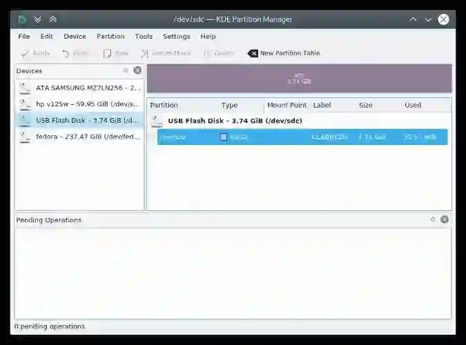 可以预见的是,GNOME 版本会比 KDE 版本更加简单,因此,我将使用复杂的版本进行演示——如果你愿意动手的话,很容易弄清楚 GNOME 磁盘工具的使用。