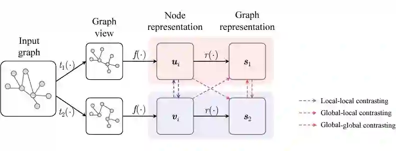 在介绍该论文前,我们先了解一些名词 node-node contrasting mode(i.e. local-local), node-graph(subgraph)contrasting level(i.e. local-global), graph(subgraph)-graph(subgraph)contrasting level(i.e. global-global)