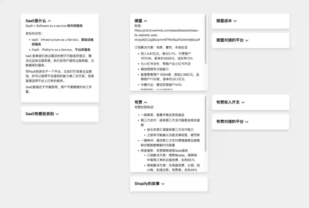 根据介绍文章,分门别类去查找对应分类中龙头企业(如 Saleforce、Shopify),以及一些新兴的企业。把这些企业的内容保存为若干卡片。