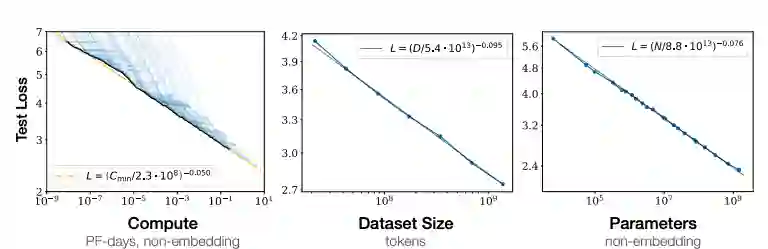 模型性能依赖于规模,它由三个因素组成:模型参数N的数量(不包括嵌入),数据集D的大小以及训练所用计算资源C。