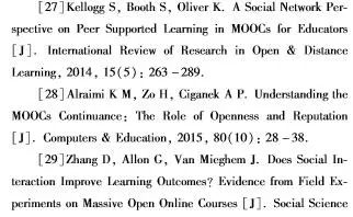 一方面,社会交互影响了学生继续学习或退学的动机,而学习动机对于留在xMOOCs中尤其重要,缺乏动力是学生辍学的主要原因。另一方面,社会交互有利于唤起学生对非面对面教学模式的积极感受,使学习者产生了类似学习社区的知识共创、兴趣和情感支持,增强了在线学习环境的参与性、合作性和启迪性。