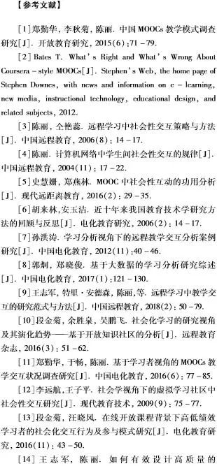对社会交互水平的研究是研究者关注的重点之一。当前研究中,主要通过交互数量和交互质量两个维度对xMOOCs的社会交互水平进行测量。