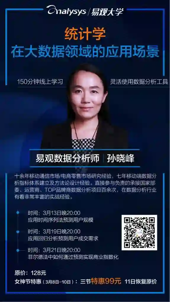 特邀超十年经验的易观数据分析师孙晓峰,推出高度凝练的整套课程。通过3个课时,多个经典应用场景力证3个统计学理论知识点,超150分钟的时长,帮您建立扎实的大数据理论基础,力求帮助在大数据领域有更多抱负的初中级商业分析师、数据分析师、商业咨询顾问及数据运营人员,达到知识系统二次更新的效果。